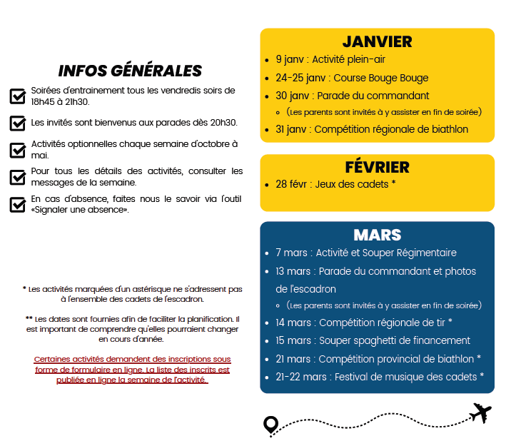 Demande d'intérêt pour les Camps d'été 2026 (pour les cadets de niveau 2 et +) Un cadet de première année doit avoir l'âge requis et être inscrit sur le niveau 2 pour pouvoir être inscrit.